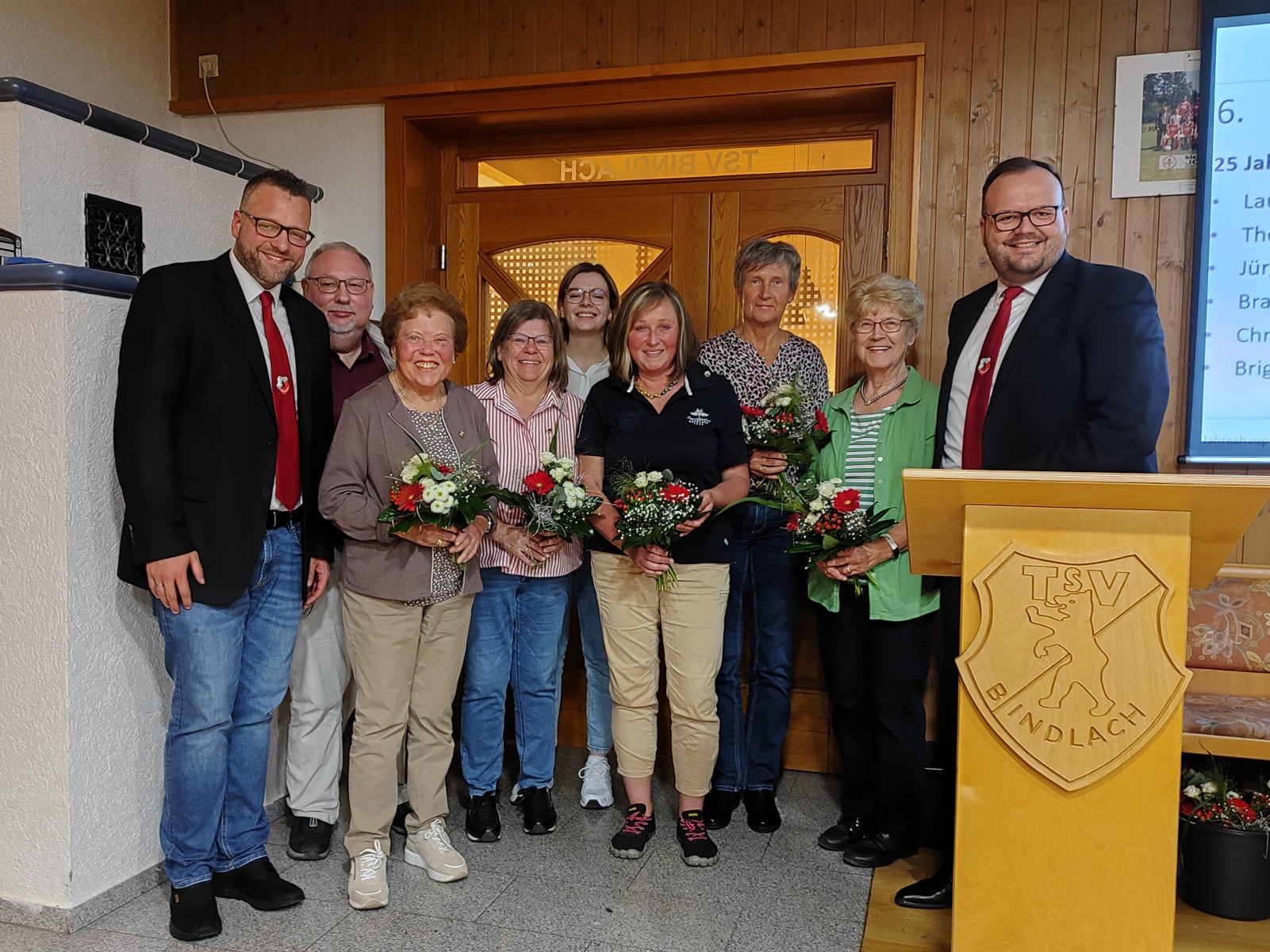 Für 25-jährige Mitgliedschaft: Jürgen Delitzsch, Brigitte Hofmann, Simone und Sophia Jahreis, Christine Utz, Margit Knörrer und Frieda Weber.