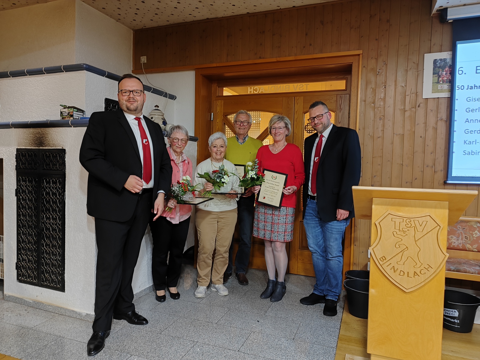 für 50 Jährige Mitgliedschaft: Annegret Heidenreich, Gerlinde Hass, Herbert Wehrberger und Sabine Maisel.