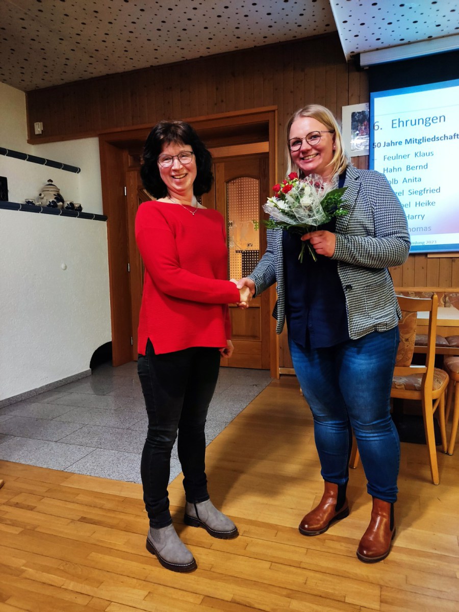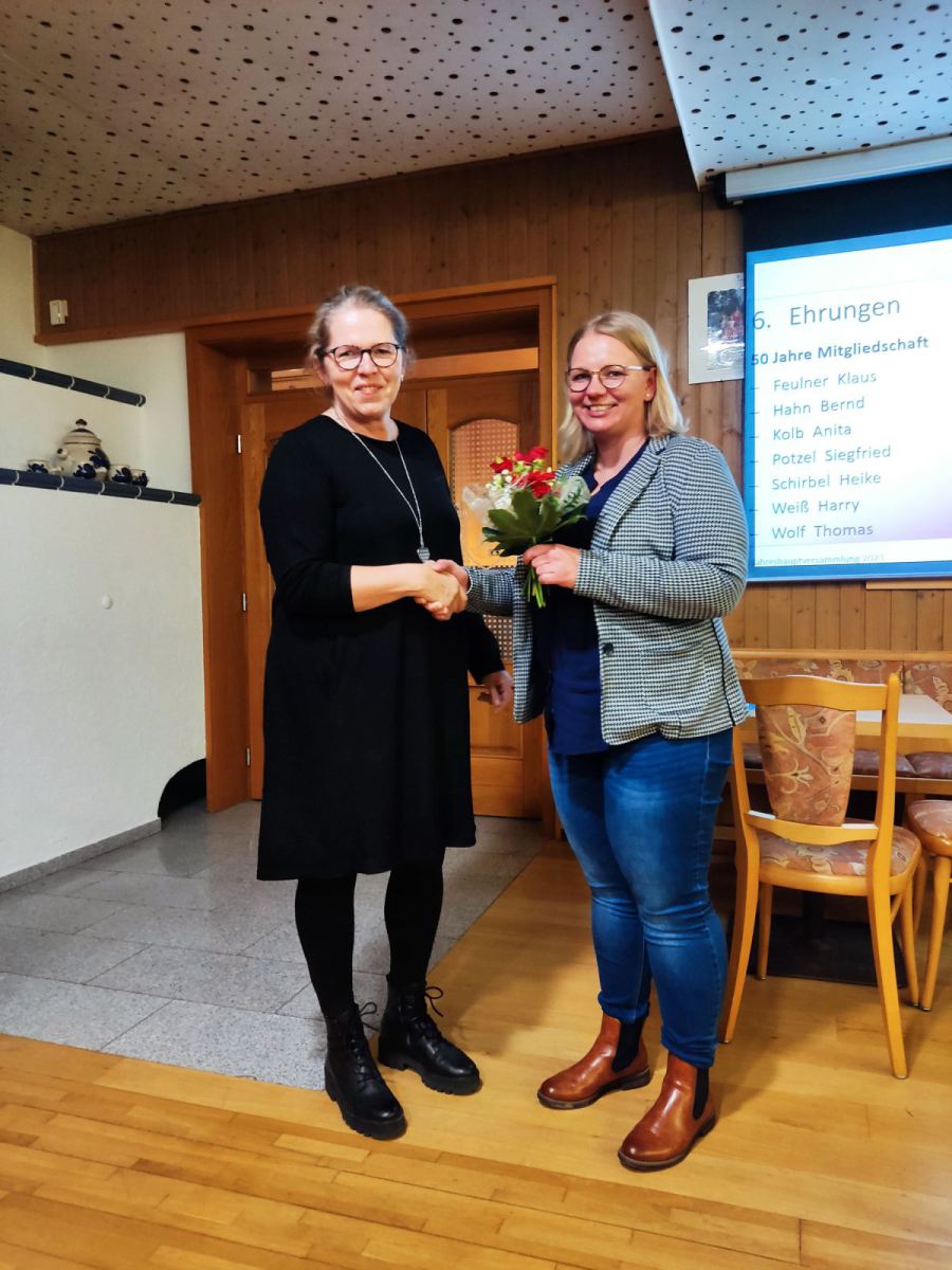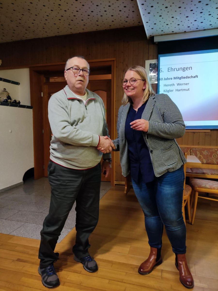 Kathrin Knörer ehrte die anwesenden Jubilare. Das waren für 25 Jahre: Stefan Kögler, für 50 Jahre: Anita Kolb, Heike Schirbel, Klaus Feulner, Bernd Hahn, Harry Weiß und Thomas Wolf, für 60 Jahre Hartmut Kögler, sowie für 70 Jahre, Klaus Streng.
