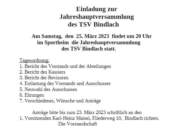 Am Samstag, den 25.03.2023 fand die diesjährige Jahreshauptversammlung im Sportheim statt. Der 1. Vorsitzende, Karl-Heinz Maisel konnte dazu rund 50 Vereinsmitglieder begrüßen. Zu Beginn gedachte man den verstorbenen Mitgliedern. Als Neuerung wurden die Vorträge der Vorstandschaft und der Spartenleiter dieses Jahr durch eine Power-Point-Präsentation unterstützt, welche per Beamer groß an die Leinwand projiziert wurde. Die Visualisierung der sonst abstrakten Daten und Zahlen, kam bei den Mitgliedern sehr gut an. Karl-Heinz Maisel begann den Reigen der Vortragenden mit dem Bericht der Vorstandschaft. Er konnte über allgemein erfreuliche Zahlen bei den Mitgliedern berichten. Die Zahl stieg nach der Coronapandemie wieder deutlich an. 2. Vorstand, Stefan Kögler informierte über Grundlegendes aus der größten Sparte „Fußball“. Kathrin Knörer, die als 3. Vorständin für den Wirtschaftsbetrieb zuständig ist, berichtete über die Suche nach einem neuen Pächter für die Gaststätte. Es folgten die Abteilungsleiter mit ihren Berichten, die jeweils kurze Einblicke in ihre Sparten vermittelten. Vereinskassier Dominik Saalfrank konnte Positives über die finanzielle Situation ausführen. Es konnten trotz der angespannten Einnahmesituation Darlehen getilgt werden. Werner Schirbel als Revisor bestätigte dem Kassier und der Vorstandschaft eine tadellose Buch- und Kassenführung. Er stellte den Antrag an die Versammlung die Vorstandschaft und Vereinsausschuss zu entlasten, was auch ohne Gegenstimme geschah. Anschließend folgten die Neuwahlen zum Vereinsausschuss.