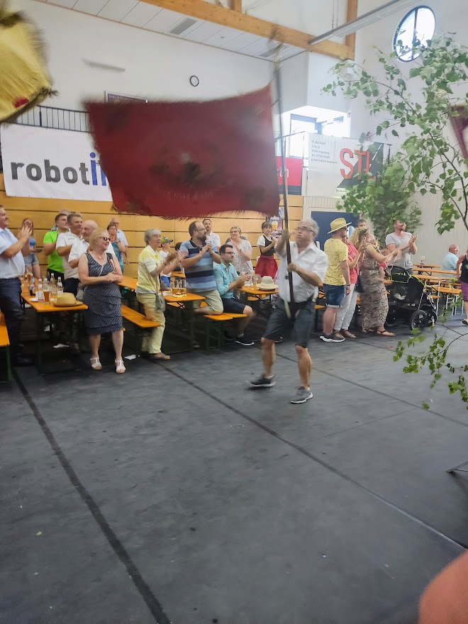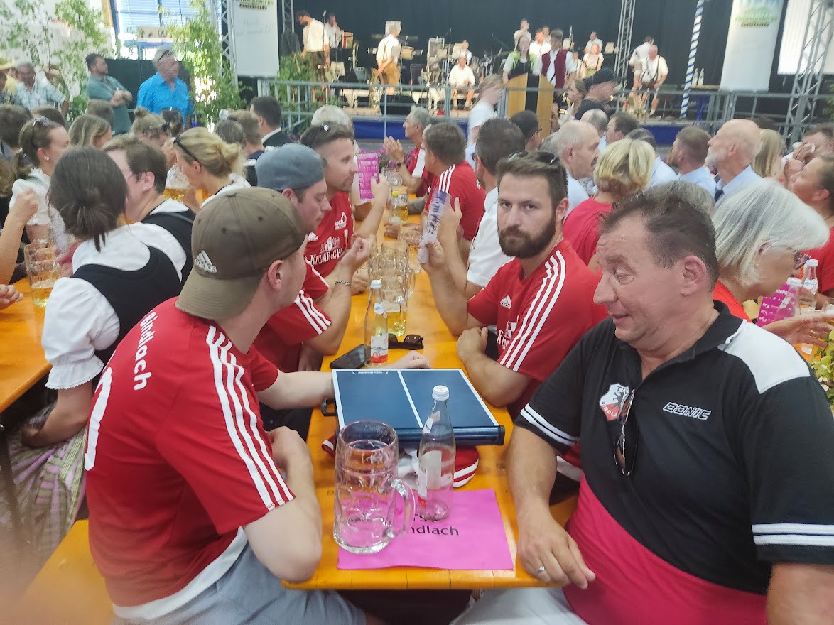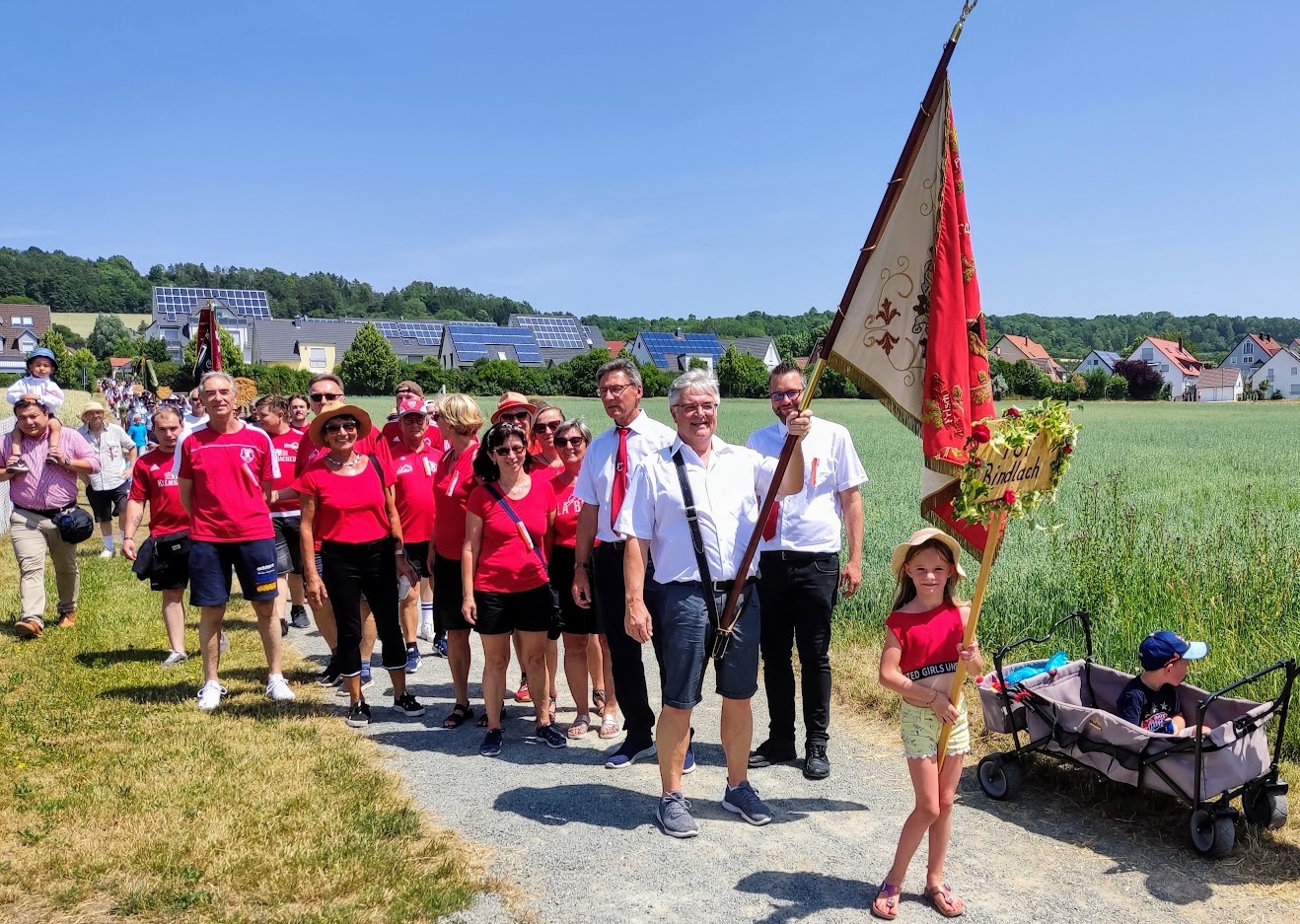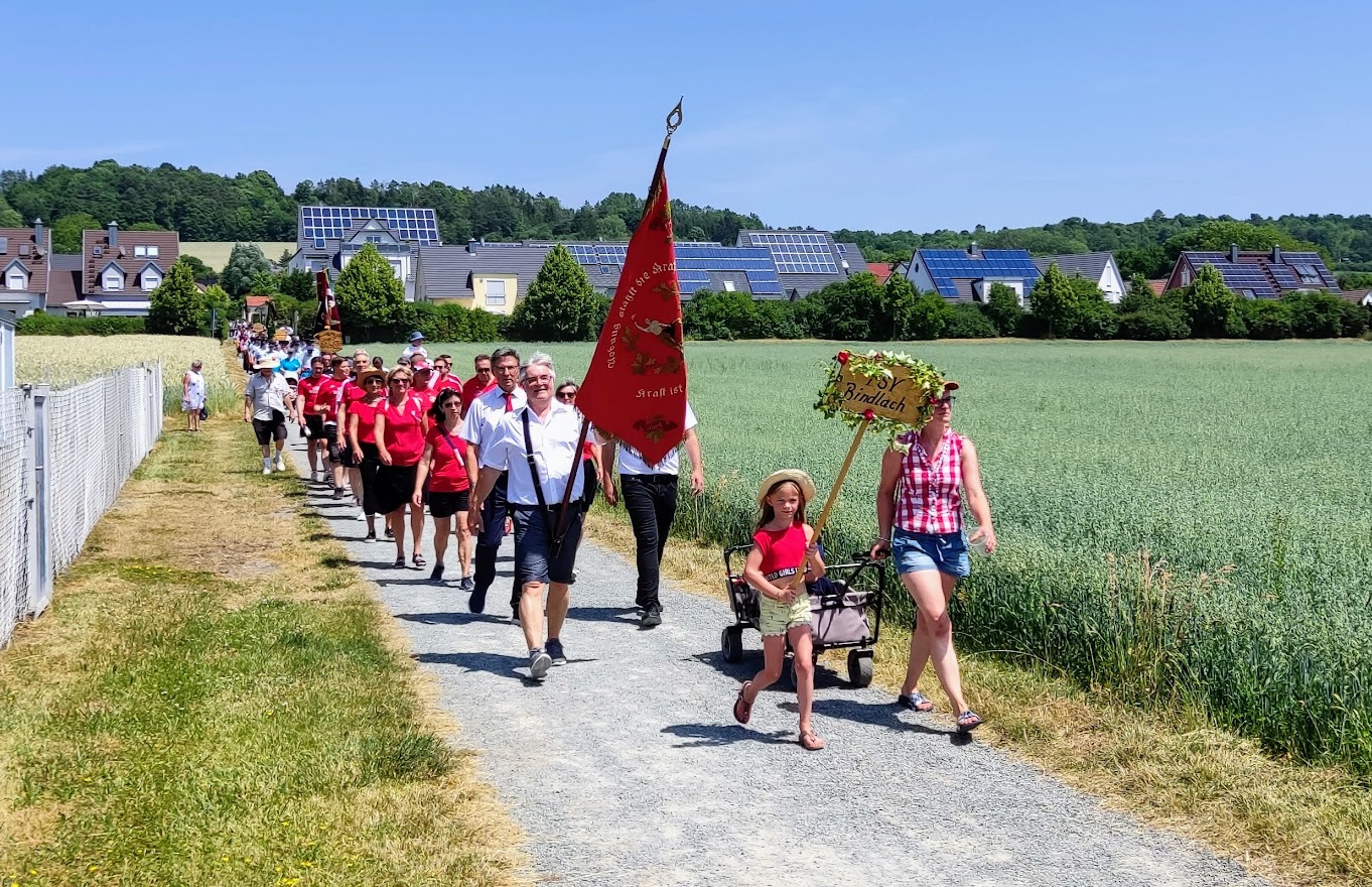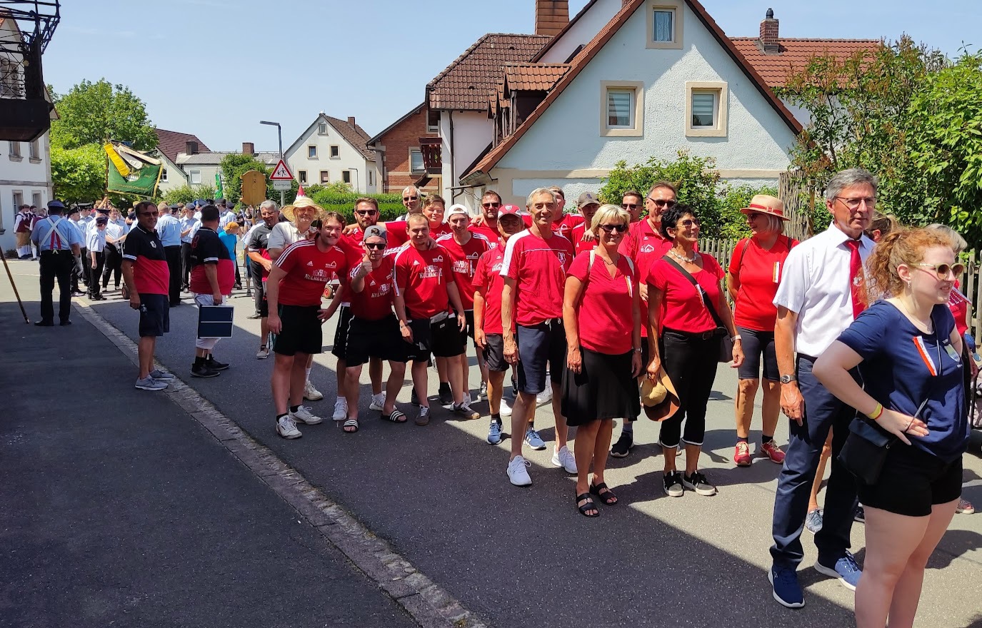 Bei schweißtreibenden Temperaturen nahmen wir am Umzug der Landjugend durch Bindlach teil. Angeführt von Charlotte mit dem TSV Täfelchen, Fahnenträger Bernd, den Vorständen Karl-Heinz und Stefan folgten Mitglieder aus den Abteilungen Fußball, Turnen, Altliga, Tischtennis und Tennis.