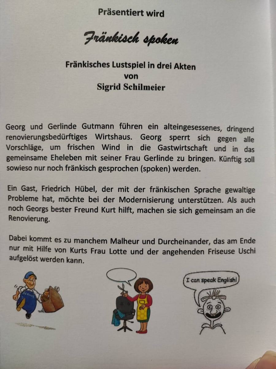 Das Fränkische Lustpiel in drei Akten passte 100 %ig zu unseren Ensemble. Bei der Geschichte um ein fränkisches Wirte-Ehepaar mit einem renovierungsbedürftigen Wirtshaus kam so Einiges richtig durcheinander. Vielen Dank an die Besucher der sechs ausverkauften Aufführungen. Nachfolgend einige Fotos!