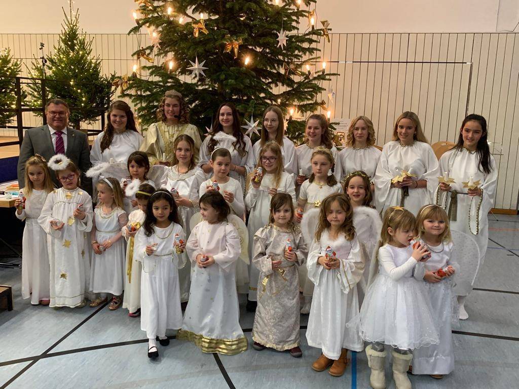 Nachdem die kleinen und großen Engel zusammen ein paar Weihnachtslieder gesungen haben, führten die großen Engel noch einen Kerzentanz auf.
